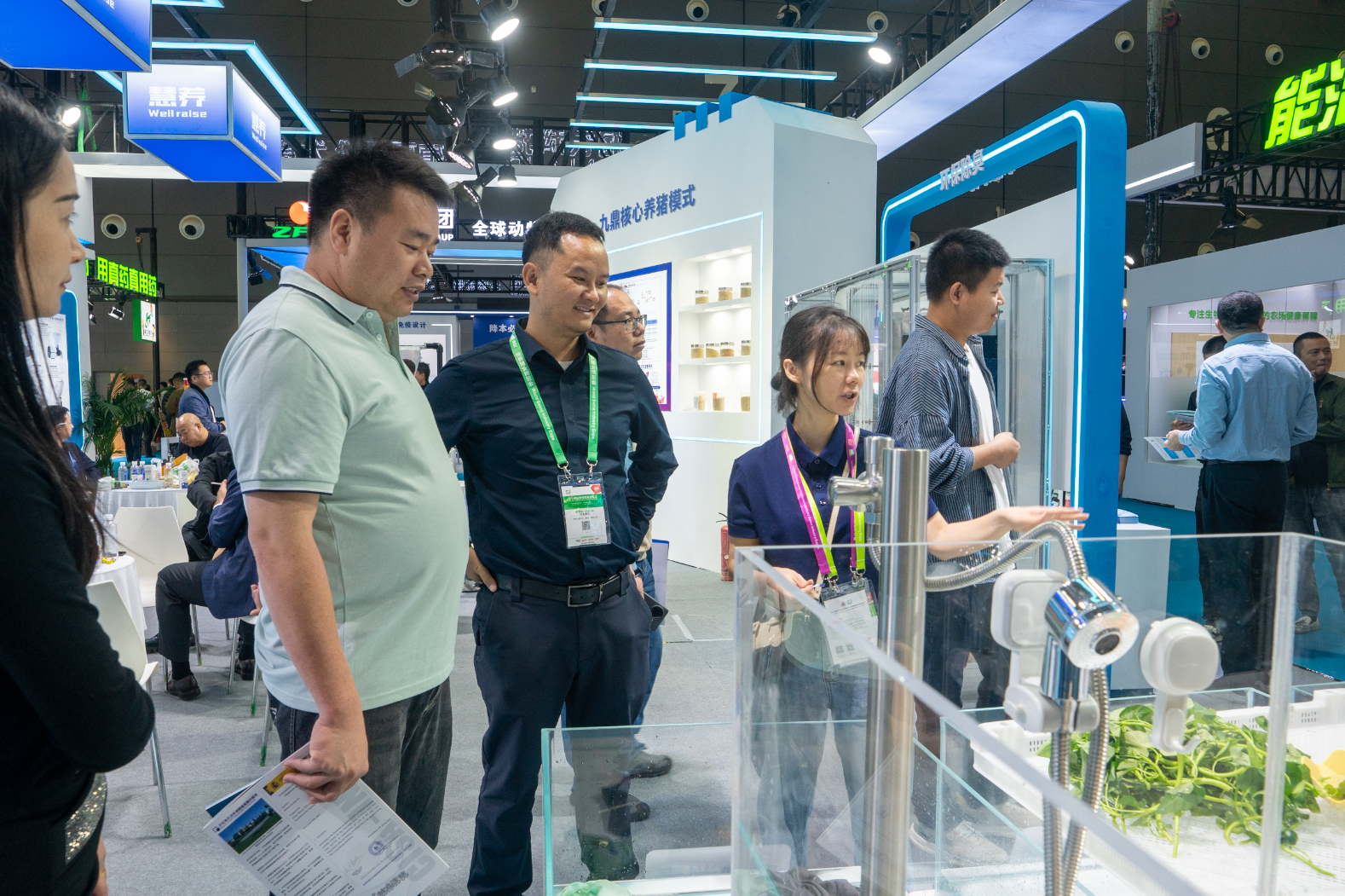 在九鼎集團(tuán)展區(qū)內(nèi),“智鏈三驅(qū)”智能化養(yǎng)豬解決方案的亮相吸引了大量專業(yè)觀眾駐足交流。